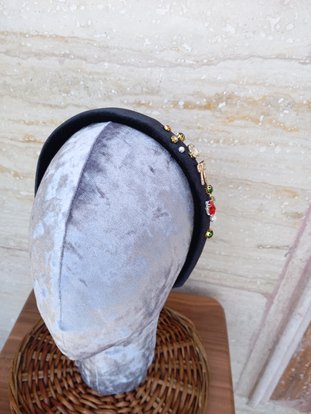 جنس این کار از مخمل اعلا بوده و با سنگ های درخشان و اکسسوری پاپیون تزیین شده است